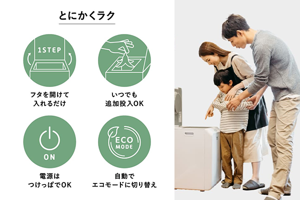 しっかり密閉されているので処理中の騒音やニオイも気にならないから深夜でも気にせずに使用可能♪