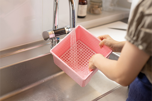バスケットをさっと水洗いするだけ |